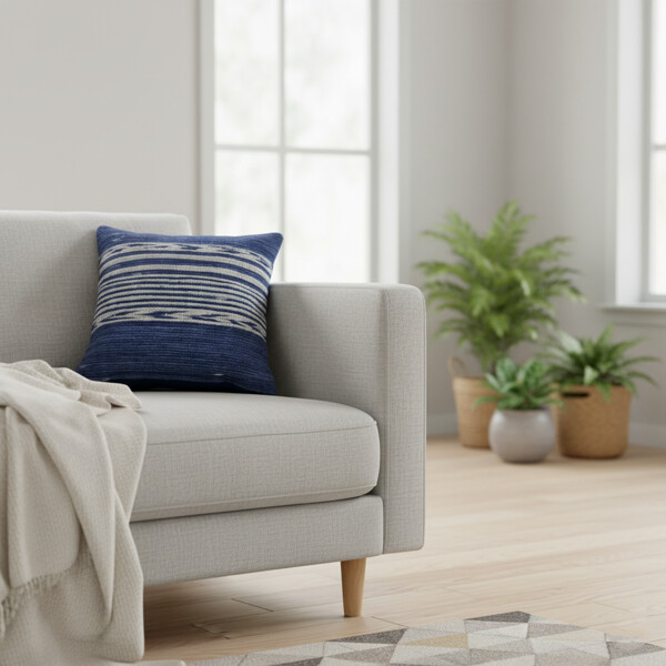 Lägg till charm och unik textur i ditt vardagsrum med vårt utsökta handgjorda kuddfodral från Thailand. Med vackra indigotoner och intrikata flätade ränder ger detta kuddfodral en konstnärlig touch och mysig värme till vilken soffa, fåtölj eller säng som helst. Finns i 2 storlekar.