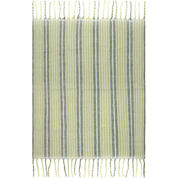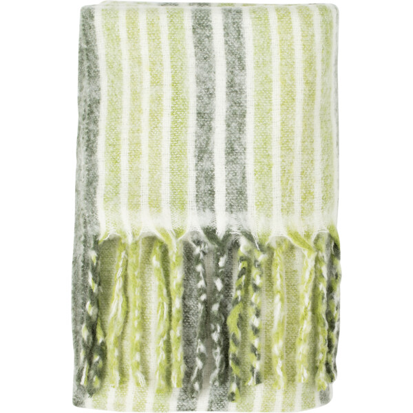 En pläd med karaktär, vävd i en blandning av ull och akryl för att ge både mjukhet och styrka. Den levande ytan och de dämpade tonerna ger en varm, ombonad känsla. Perfekt att svepa om sig när vinden är lite kylig.