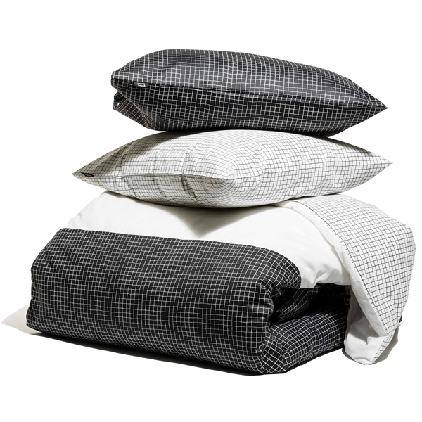 Ett klassiskt och stilrent mönster av Bertil Vallien i 100% bomullsatin. Innehåller ett påslakan och två örngott.Storlek: Örngott 50 x 60 cm Påslakan 150 x 210 cm.