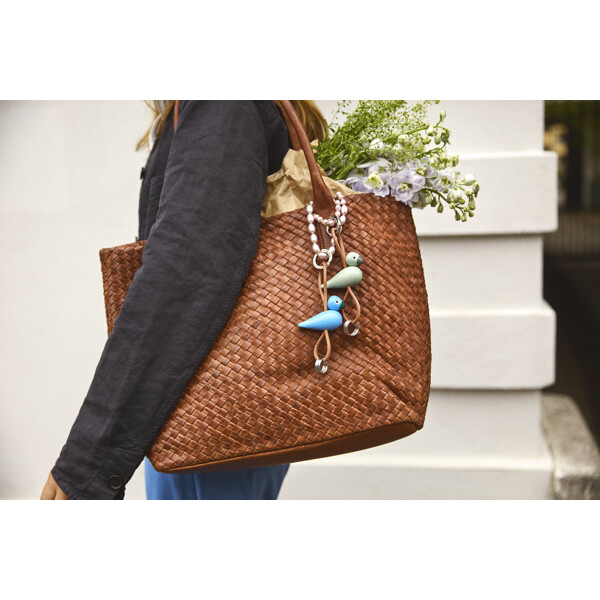 Ta med dig Kay Bojesens älskade klassiker och din kärlek till original dansk design överallt. På väskan. På bältet. Eller med bilnycklarna. Denna Kay Bojesen-nyckelring har en grön sångfågel i miniatyrutgåva, tillverkad i FSC®-certifierad bokträ, och kompletteras med en elegant och praktisk snodd i äkta läder. Snodden kan justeras upp och ner i förhållande till figuren, så att du kan skapa ditt helt egna uttryck. Överst sitter en stor silverfärgad nyckelring graverad med Kay Bojesen Denmark, som både fungerar som en stilren detalj och en praktisk funktion med sin smarta karbinhake för enkel öppning och stängning. Under figuren hänger tre extra nyckelringar, så att du har gott om plats för alla dina nycklar. Med en stilren och dekorativ nyckelring från Kay Bojesen Denmark kan du enkelt ge vardagen en personlig touch och ta med original dansk design vart du än går – med den klassiska sångfågeln som din alltid trogna följeslagare. Kay Bojesen var en mästare på att tillföra små detaljer till sina träfigurer. Han fann magin i naturens eget material, och med sin enastående talang för formgivning tog den ena lekfulla figuren efter den andra form i hans fantasi och blev levande i hans händer. En av hans största klassiker är utan tvekan sångfågeln. Och även om sångfågeln i denna nyckelringsversion har skalats ner till endast 4,5 cm i höjd, bär den fortfarande med sig ett rikt arv av Kay Bojesens designhistoria vart du än går. Kay Bojesen skapade sin första träfigur 1922 och öppnade tio år senare butik och verkstad på Bredgade i Köpenhamn. Sedan dess har Kay Bojesen varit synonymt med original dansk design och ett lekfullt universum av ikoniska träfigurer, skapade med ett enastående öga för detaljer, humor och glädjen i unikt kvalitets-hantverk. Det är därför vi säger att Kay Bojesen har varit original sedan 1922.
