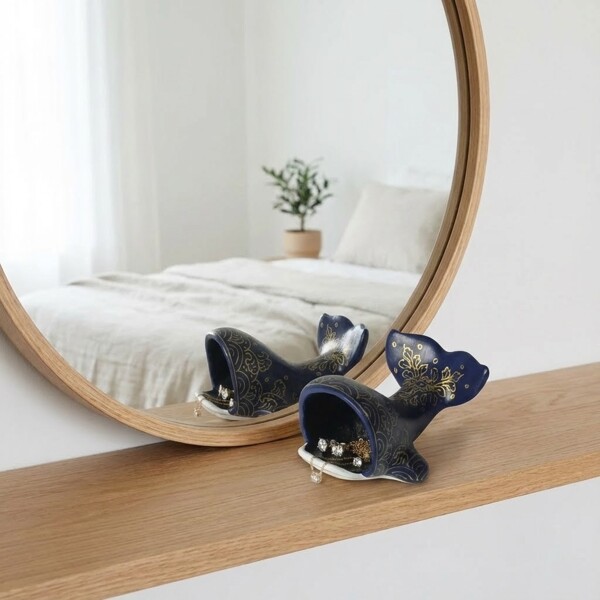 Utforska unik dekoration med vår charmiga handgjorda val. Omsorgsfullt tillverkad i Thailand av återvunna pappers kärnor, är denna förtjusande val prydd med handmålade thailändska motiv, inspirerade av den vackra traditionella konsten. Den fungerar som ett fängslande dekorativt föremål och dess öppna mun erbjuder också en unik plats för att förvara smycken eller andra små skatter.Storlek: Cirka 9 x 13 x 7 cm. Material: Papier-maché av återvunnet papper, vilket främjar hållbar inredning. Handmålad med detaljerade thailändska mönster, vilket ger varje val en distinkt konstnärlig karaktär. Den bedårande formen ger en lekfull men ändå elegant touch till vilket rum som helst. Dess öppna mun erbjuder en smart och diskret plats för smycken eller små föremål. Lätt att rengöra med en fuktig trasa