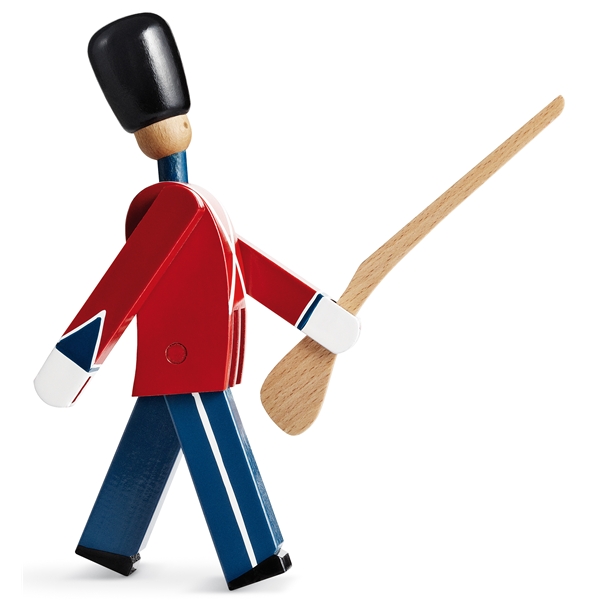 Design: Kay Bojesen Inspirerad av en av Danmarks nationalsymboler från Amalienborgs slott skapade Kay Bojesen 1942 sina handmålade gardister. Sedan dess har Trumslagaren, Fanbäraren och den Menige gardisten med gevär varit stolta representanter för dansk kvalitetsdesign. En bra presentidé för hela livet till både barn och vuxna. Storlek: Höjd: 22,5 cm Material: Målad bok. Färg: Röd, blå & vit färg