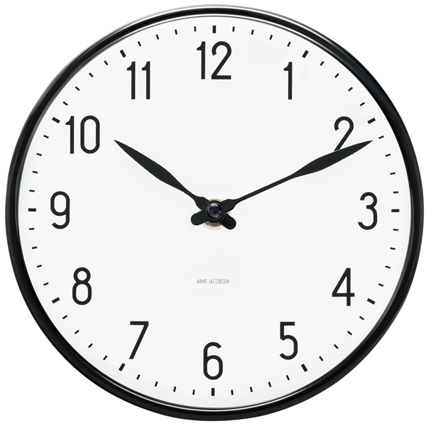 Håll rätt på tiden och koll på tidens inredningstrender. Arne Jacobsens stationsur ritades ursprungligen till elvaruproducenten LK 1941. Originaldesignen av den ikoniska klassikern har nu återskapats och förvandlar en anonym vit vägg till ett tydligt designbudskap. Den grafiska designen förstärks av en toppring i svart aluminium. Finns i tre storlekar, här i det stora formatet. En fin gåva som kommer att gå i arv i generationer.