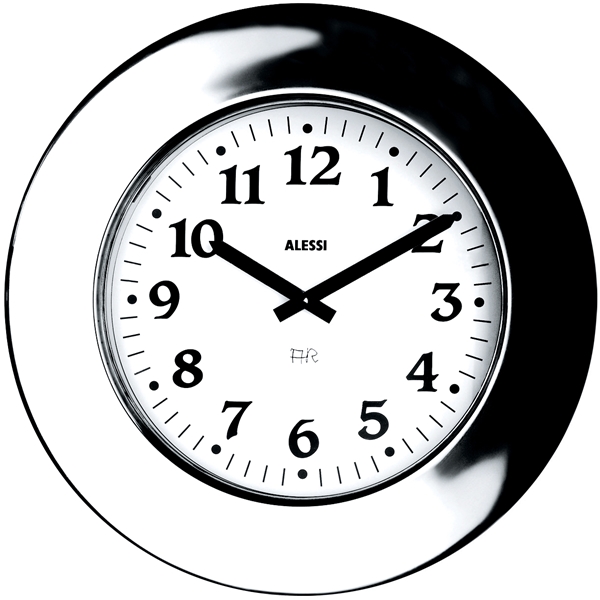 Mekanisk väggklocka i blankt rostfritt stål. Design: Aldo Rossi Mått: ø 40cm