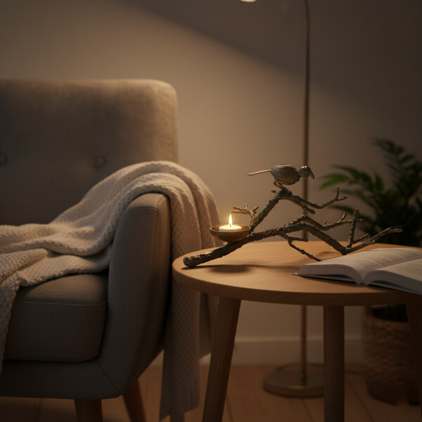 För in en touch av naturinspirerad konstnärlighet och varm atmosfär i ditt hem med denna utsökta handgjorda metallskulptur. Noggrant formad av metall, har den en charmig fågel som elegant sitter på en gren, tillsammans med en liten, integrerad skål perfekt för att hålla ett ljus eller små skatter. Detta 100% handgjorda verk är ett bevis på unikt hantverk, som tillför sofistikerad charm och ett mjukt sken till vilken miljö som helst. Storlek: Cirka 36 x 26 x 10 cm Material: 100% metall, skickligt hantverk. Handgjord Perfektion: Varje del är 100% handgjord, med former och detaljer. Unik Design: Har en graciös fågel sittande på en skulpterad gren, med en funktionell ljushållare eller skål för att hålla ringar, örhängen eller andra små prydnadssaker.