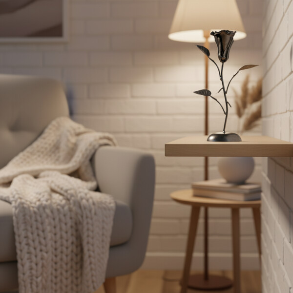 Ge bort evig skönhet med vår handgjorda metallros-skulptur, skapad av återvunnet metall av skickliga hantverkare. Varje kronblad och blad berättar en historia om förvandling, symboliserande kärlek och konstnärlig uppfinningsrikedom. Detta unika verk passar perfekt på ett skrivbord eller som ett romantisk objekt, och visar upp en blandning av industriell charm och naturlig elegans. Det representerar miljömedvetet hantverk och erbjuder bestående skönhet.