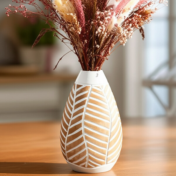 Hög trävas med bladmönster Aumi Collection