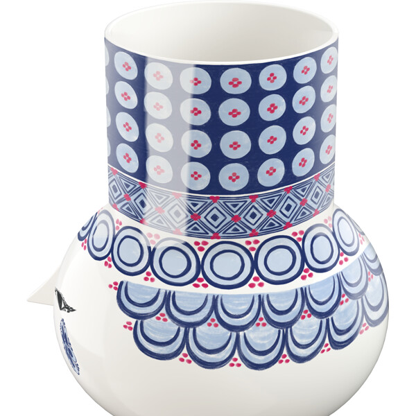 Släpp loss din färgglada personlighet och låt din kreativitet blomstra med Bjørn Wiinblads Olga. Med sitt ljusa leende, rodnande kinder och färgglada dekorationer förkroppsligar Olga essensen av Bjørn Wiinblad som person och konstnär – även när hon är formad som en vas. Glad och drömmande ger hon liv och personlighet till inredningen med sitt poetiska uttryck och sina livfulla färger. Olga-vasen är en nytolkning av en ikonisk vas som Bjørn Wiinblad skapade i samarbete med keramikfabriken Nymølle. De nya Olga-vaserna har samma cylindriska topp som vasen från Bjørn Wiinblads imponerande designarkiv och är prydda med ett sött runt ansikte med mandelformade ögon och den ikoniska trekantiga näsan, som nästan är personifieringen av Bjørn Wiinblads konst. Alla Olga-vaser är gjorda av blank glaserad keramik med färgglada dekaler, och dekorationerna är en härlig blandning av originalmönster från Bjørn Wiinblad, som i en varierad färgpalett ger dig ett modernt och fräscht uttryck. Bjørn Wiinblad var en glad konstnär med en stor och färgstark personlighet, som följde sin egen väg och inte var rädd för att drömma och tänka stort. Hans anda känns fullt ut i Olga, som på ett mycket självsäkert sätt inbjuder oss att uttrycka vår egen stil och personlighet i inredningen med färgglada blombuketter, exotiska växter och kreativa dekorationer. En sak är säker: Livet blir aldrig tråkigt när Olga flyttar in.