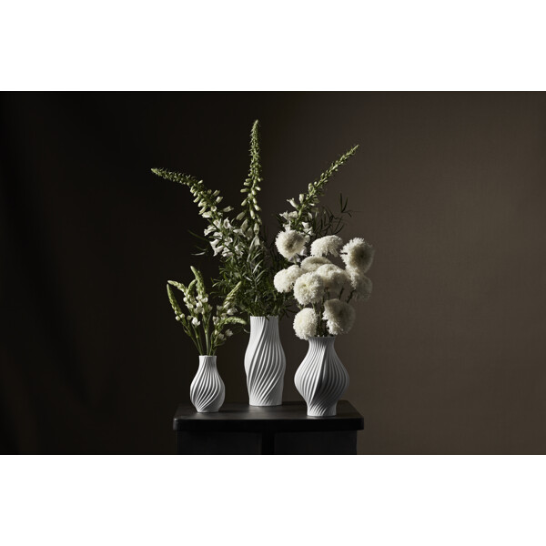 Ett elegant möte mellan natur och kultur. Med de unika Twist-vaserna i Lyngby-serien får du enkel, stilren och skulptural porslinsmagi – precis som vi känner det från Lyngby Porcelæn, där arkivdesign, klassiska former och ren estetik förenas i en perfekt designvridning med linjer som inspirerar. Idag har Lyngby-designen etablerat sig som en sann klassiker i Lyngby Porcelæns kollektion – varje del definieras av de inspirerande linjer som kännetecknar den minimalistiska och stilfulla designen och ger Lyngby-serien sitt distinkta uttryck. Med Twist tar Lyngby Porcelæn en elegant sväng in på nya designvägar och ger dig en vas inspirerad av de naturliga formationer vi hittar i naturen – barken på ett träd, spiralformade galaxer, böjda blomstjälkar och uråldriga landskapsformationer. Vasen finns i olika storlekar. Som en hel serie kompletterar de naturligtvis varandra perfekt, men de kan också stå ensamma som skulpturala designelement i olika rum. Oavsett storlek och placering kommer de alla att utgöra ett litet, medelstort eller stort statement i hemmet, och med säsongens grenar eller buketter framhävs kanske deras dynamiska form ännu mer. Detta skapar ett härligt tillskott av naturligt lugn och harmoni, utan att på något sätt överskugga vasernas karaktäristiska formspråk. Självklart har alla vaser den ikoniska logotypen i botten, som garanterar att du har en äkta vasdesign – den från Lyngby Porcelæn.