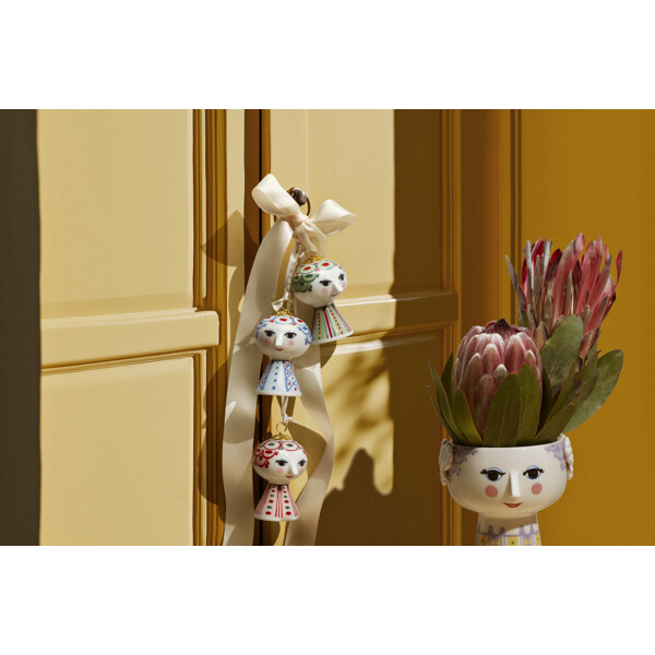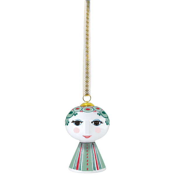 Vik ut din färgstarka personlighet och skapa plats för glädje med Bjørn Wiinblads Eva. Så snart du bjuder in Eva i ditt hem kommer denna populära serie med Bjørn Wiinblads karakteristiska linjer genast att sprida glädje i varje hörn. Under hela sin karriär utforskade Bjørn Wiinblad färger, former och mönster – och med den ikoniska Eva-hängdekorationen kan du på ett enkelt och dekorativt sätt låta kreativiteten flöda i ditt hem. Bjørn Wiinblad representerar allt som är lekfullt, originellt, kreativt och underbart. Och med denna vackra Eva-hängdekoration i främst gröna nyanser, inspirerad av konstverk från Bjørn Wiinblads legendariska designarkiv, skapar du snabbt en atmosfär av glädje och kreativitet som sträcker sig ut i varje vrå av ditt hem. Hängdekorationen är 7,5 cm hög och tillverkad av blankglaserat porslin med färgade dekaler, inspirerad av Bjørn Wiinblads ursprungliga Eva-universum, där breda huvuden med blommiga dekorationer och en konformad kropp utgjorde grunden. Ansiktet med de mandelformade ögonen och den spetsiga näsan är ritat i Wiinblads ursprungliga linje, medan det färgstarka klänningsmönstret är en modern tolkning av hans arkivillustrationer. Med sitt glada leende, rosiga kinder och färgstarka dekorationer förkroppsligar Eva essensen av Bjørn Wiinblad som person och konstnär. Det finns något "larger than life" över hennes självsäkra, poetiska och drömska uttryck, som gör henne till ett statement piece som fångar ögat oavsett storlek. Hon pryder och sprider glädje på julgranen, i fönstret eller på grenar, där hon hänger i ett band med guldfolietryck och original Bjørn Wiinblad-dekor – och lyser upp tillvaron precis så som Bjørn Wiinblad älskade det. Bjørn Wiinblad var en livsglad konstnär med en stor och färgstark personlighet, som gick sin egen väg och inte var rädd för att drömma och tänka stort. Den själen finns också i Eva, som utstrålar självsäkerhet och inspirerar oss att uttrycka vår egen stil och personlighet genom kreativa dekorationer. En sak är säker: Det blir aldrig tråkigt när Eva flyttar in.