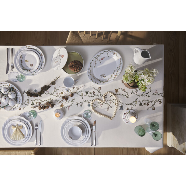 Hammershøi Jul är en julserie från Kähler där fokus ligger på den klassiska berättelsen. Hans-Christian Bauer och Rikke Jacobsen står bakom årets design, och här får du ett set med två vackra julförvaringsburkar. Dessa är gjorda i vit metall som gör dem mycket användbara till exempelvis hembakta kakor eller julens gåbortpresenter. Den eleganta utsmyckningen består av fina grenar med gran och små kottar som fin utsmyckning. Här hittar du även små julhängen, vilket gör den både klassisk, enkel och väldigt elegant att ha stående hemma. Får ej diskas i diskmaskinen.