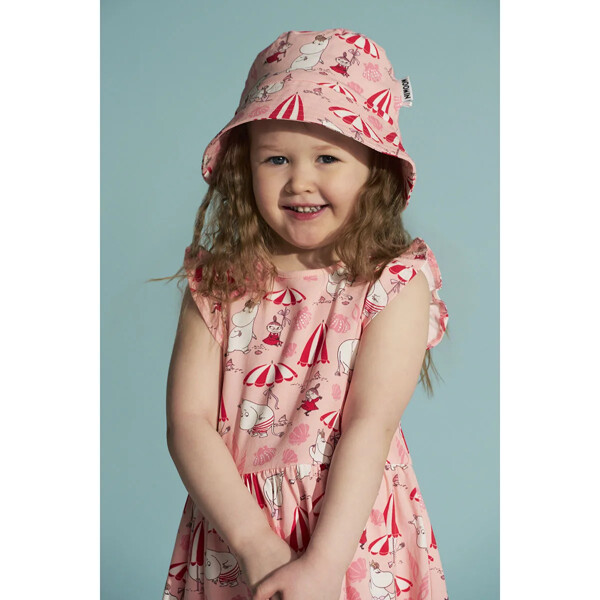 En mjuk och skön Mumin solhatt för barn. Solhatten är fodrad och dess brätte skyddar ögonen mot solen. Produkten innehåller certifierad ekologisk bomull.