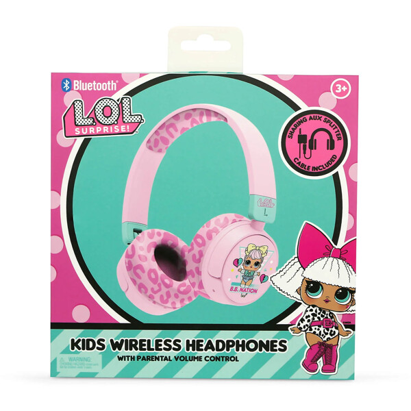 Trådlös hörlur för barn med två olika volyminställningar på 85 dB och 95 dB, för trygg volymbegränsning i alla miljöer.