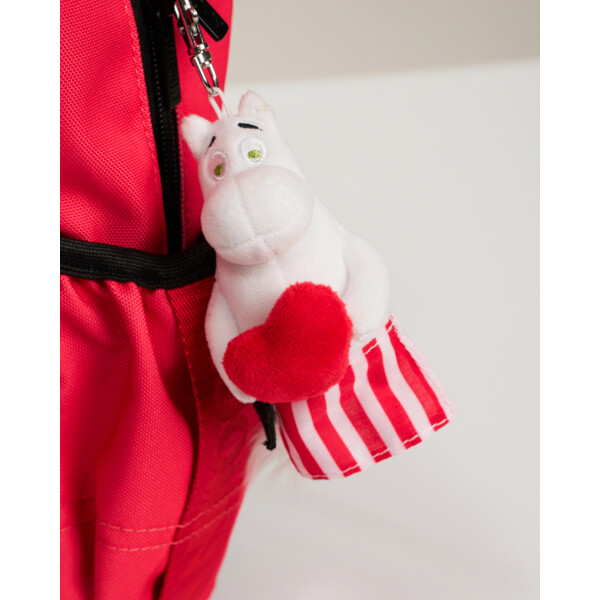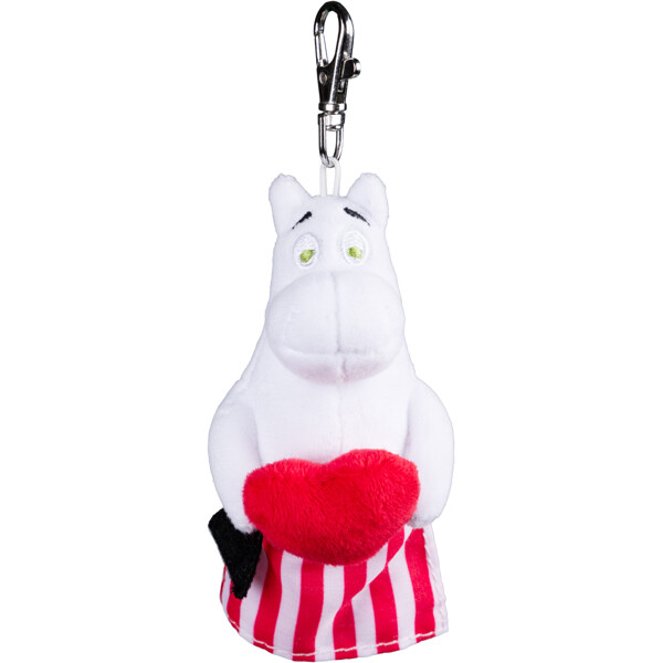 En väskdekoration eller nyckelring från Mumin. Den mjuka och gosiga Muminmamman håller en liten hjärtkudde i famnen. Nyckelringen är cirka 10 cm hög och tillverkad i polyester, med praktiskt clip-spänne i metall. Lätt att haka fast på väskan, nyckelknippan eller var som helst. Perfekt för att lysa upp vardagen eller som en present till någon du tycker om!