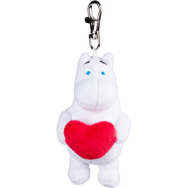 En väskdekoration eller nyckelring från Mumin. Det mjuka och gosiga Mumintrollet håller en liten hjärtkudde i famnen. Nyckelringen är cirka 10 cm hög och tillverkad i polyester, med praktiskt clip-spänne i metall. Lätt att haka fast på väskan, nyckelknippan eller var som helst. Perfekt för att lysa upp vardagen eller som en present till någon du tycker om! Alla Martinex mjukisar är CE-märkta, giftfria och barnsäkra med dragfasta sömmar och detaljer.