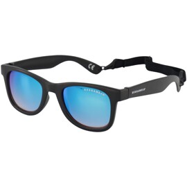 Coola svarta solglasögon till ditt barn. Mjuka och följsamma i silikon för att klara barnens oförsiktiga behandling. Snodd i resår att sätta runt huvudet för att de ska sitta på plats. Snodden är avtagbar genom spännen längst ut på skalmarna samt reglerbar för perfekt passform.