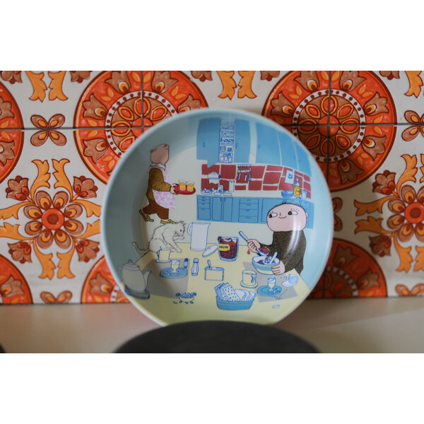 Djup skål med motiv från Alfons Åberg, tillverkad i RPET vilket är ett miljövänligt och tåligt material.