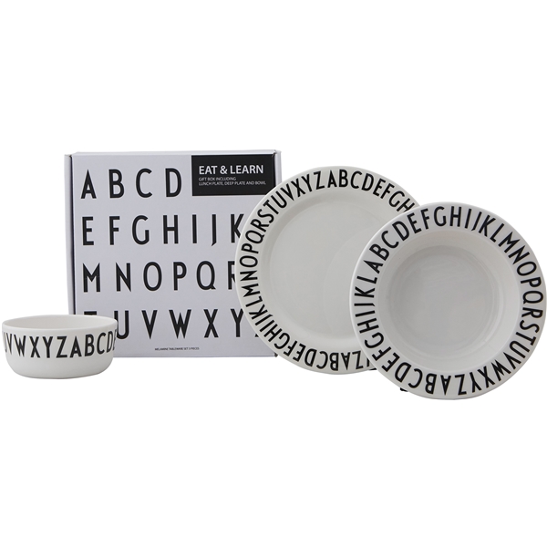 Design Letters Eat & Learn Barnservis Presentbox är ett fint set med två tallrikar och en skål. Tallrikarna och skålen är i vitt och har bokstäverna A-Z på sig vilket gör att barnet kan äta och lära sig bokstäver samtidigt.