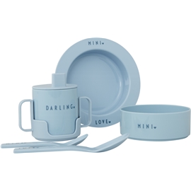 Design Letters Mini Favourite Startset är ett fint startset med allt du behöver till ditt barn från att det är bebis upp till skolåldern. Koppen kan först användas med locket och handtaget, när barnet blir större plockar man bara bort det. Skedarna kommer i två storlekar: baby och junior. Den djupa tallriken och skålen är perfekta för alla barnmåltider och kan senare användas som frukost- och mellanmålskålar när barnet blir större.