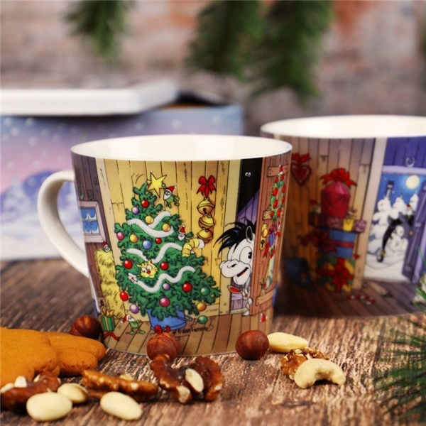 Hästen Mulle firar jul i stallet. Muggens design är av Lena Furberg. Muggen rymmer 3,5 dl och kan diskas i maskin.