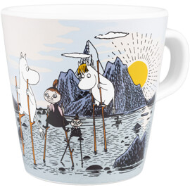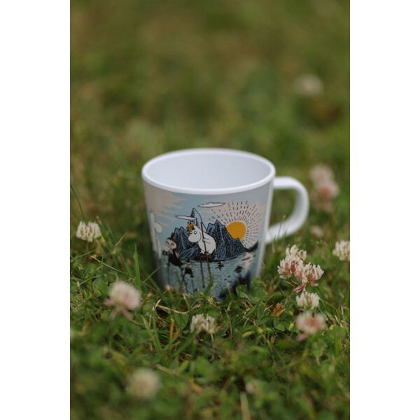 Mugg med ett handtag med motiv från Mumin, tillverkad i RPET vilket är ett miljövänligt och tåligt material.