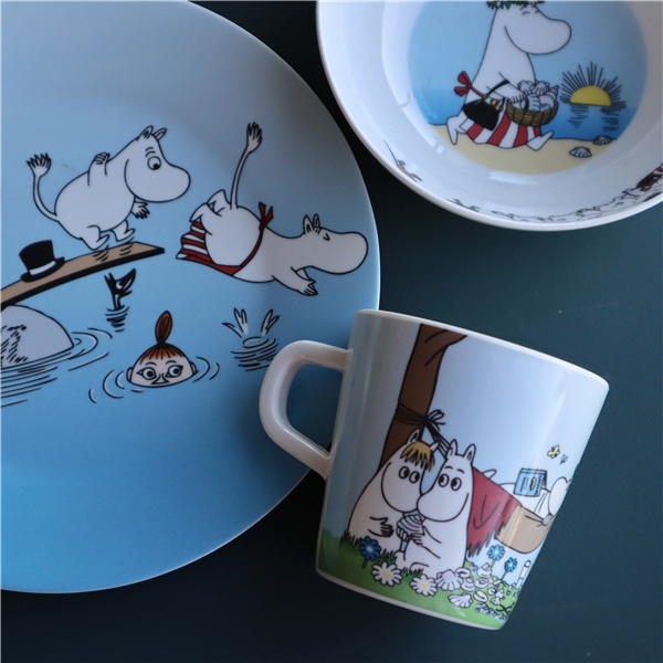 Mumin Skärgård Melaminset är ett set i fem delar av melamin med motiv från Tove Janssons sagor. Setet passar perfekt för både frukost, barnkalas eller picknick.