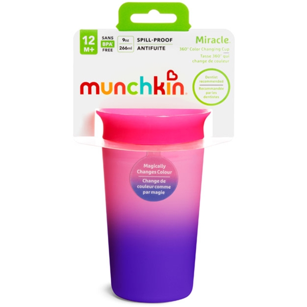 Munckin Color Changing Sippy Cup är en häftig mugg som skiftar färg när den fylls med kall vätska.