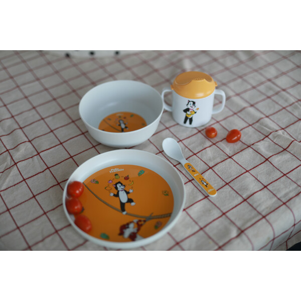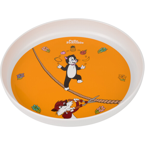 Flat tallrik med motiv från Pelle Svanslös. Tillverkad i RPET vilket är ett miljövänligt och tåligt material.