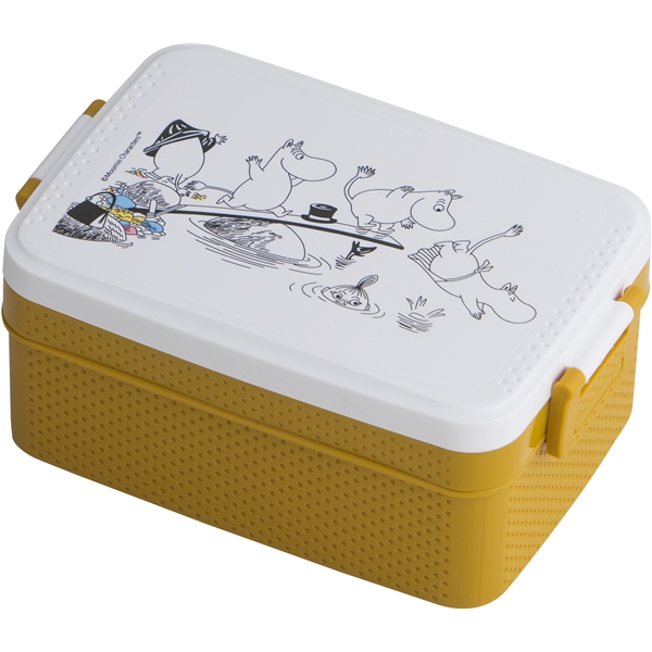 Mumin Lunchlåda Gul är en praktisk matlåda med flera olika fack. Lunchlådan är perfekt att packa ner lunchen, snacksen eller mellisen i till utflykten. Lunchlådan har ett stort fack och en iläggsskiva med två mindre fack. Den är tillverkad i tålig polypropen och är säker att använda och fri från gifter m.m.