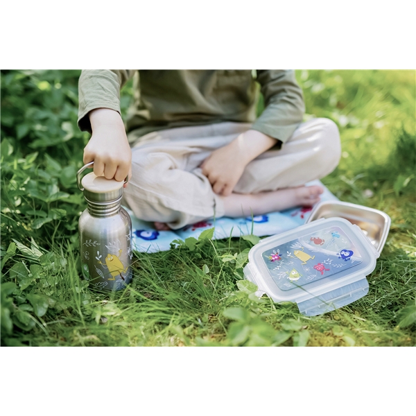 Babblarnas vattenflaska med ett snyggt motiv av babblarna i rostfritt stål är miljövänlig, hållbar och tålig. Den är perfekt att ha med sig på utflykten eller till förskolan och du slipper onödig plast i vardagen. Det enfärgade locket i trä har ett praktiskt handtag så du enkelt kan bära med dig flaskan eller hänga den på väskan eller ryggsäcken med hjälp av en karbinhake.