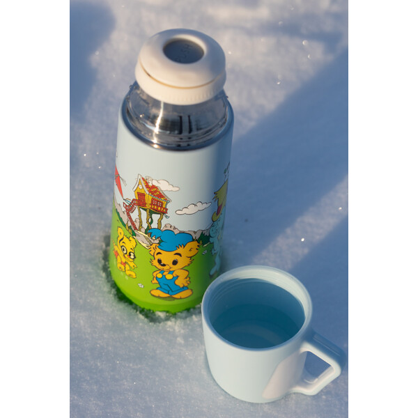 En underbar termos i rostfritt stål med Bamse-motiv.