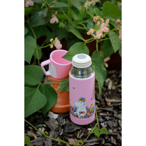 En underbar termos i rostfritt stål med Mumin-motiv.