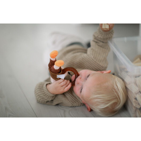 Med sin inbyggda ring av naturgummi är den perfekt att greppa för små händer och skön att tugga på när tänder är på väg.