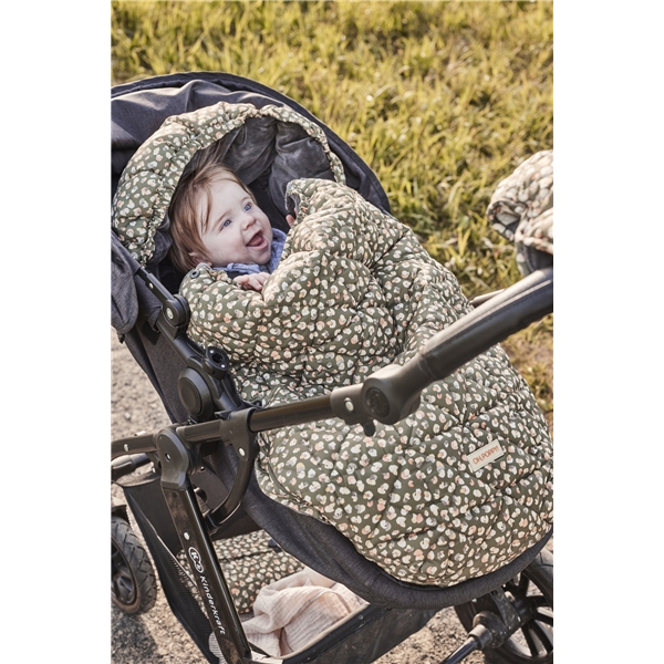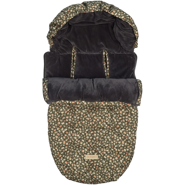 Varm och härlig åkpåse från Oh, Poppy! som gör barnvagnspromenaden med din baby extra mysig. Innermaterial i mjuk och värmande fleece och en quiltad utsida som är vind- och vattenavvisande. Perfekt för höstens och vinterns kalla dagar. Öppningar baktill för 3- eller 5-punktsbälte. Dubbla dragkedjor som gör att du enkelt kan reglera värmen och även öppna upp i botten om barnet har skor på sig. På baksidan finns en huva som du kan vika runt barnvagnens nackstöd för att hålla åkpåsen på plats i vagnen. Passar till de allra flesta barnvagnar på marknaden.