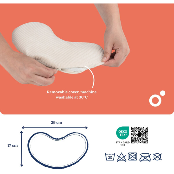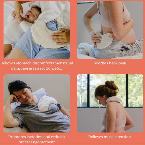 Doomoo Lindrande Kyl & Värmekudde med Raps är en bågformad kudde särskilt designad för att ge lindring vid smärta och obehag – från graviditet till amning och återhämtning. Formen är noggrant anpassad för att passa kvinnans kropp och placeras enkelt över områden som livmoder, ländrygg, nacke eller ömma bröst.Kudden innehåller en avtagbar värmekudde fylld med naturliga rapsfrön, vilket ger en jämn och behaglig fördelning av värme eller kyla – helt utan kemikalier.Fördelar och användningsområden:Vid graviditet: lindrar muskelspänningar och smärta i ländrygg eller bäckenVid amning:Värme: stimulerar mjölkproduktion och lindrar mjölkstockningKyla: lindrar ömma eller svullna bröst, blåmärken och inflammationFlexibel användning: kan placeras över livmodern, bröst, nacke eller ryggNaturlig fyllning: innehåller rapsfrön som håller värme och kyla effektivtErgonomisk bågform: anpassad efter kvinnans kroppSå använder du produkten:För kall användning: placera innerkudden i en försluten plastpåse i frysen i minst 2 timmarFör varm användning: värm kudden försiktigt enligt medföljande instruktioner (t.ex. i mikrovågsugn)
