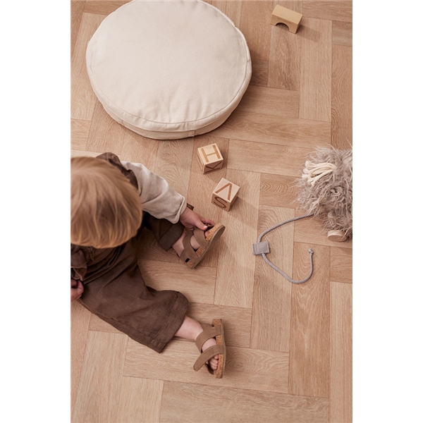 En robust golvkudde i kraftig organisk bomullscanvas. Tack vare handtaget på sidan kan du enkelt bära med dig golvkudden dit du vill sitta. Blir det på golvet i barnrummet när ni leker, i vardagsrummet framför tv:n eller någon annanstans i huset. Golvkudden är perfekt att använda i lektälten från Kids Concept och för att bygga mysiga kojor med. Avtagbart tvättbart överdrag.