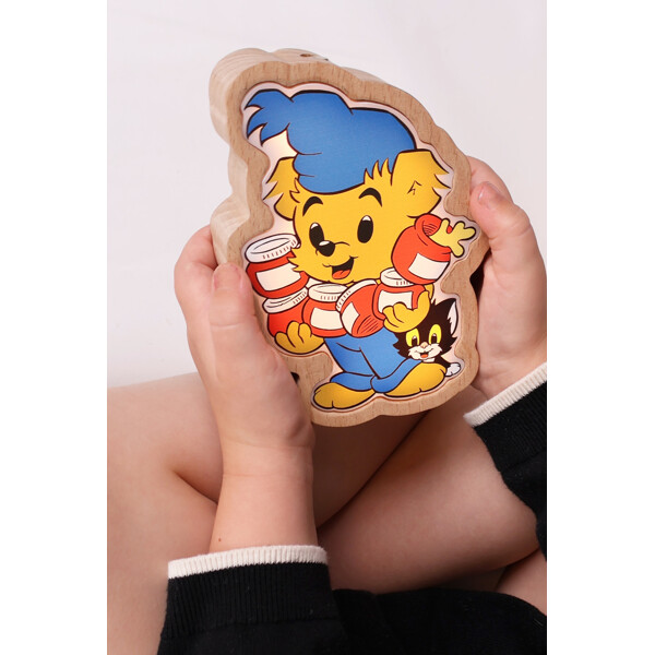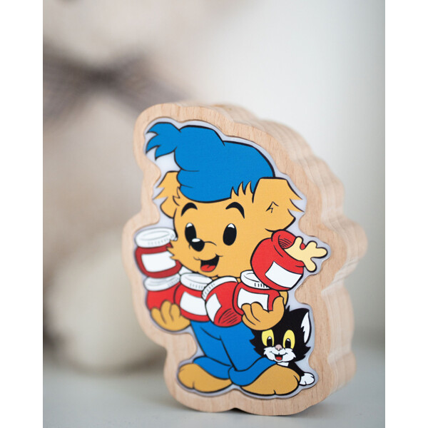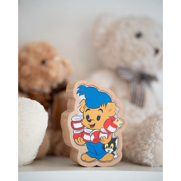 En trygg nattlampa med Bamse som lyser med varmt ljus. Laddningsbar och fin som inredning – en snäll vän som vakar i mörkret.
