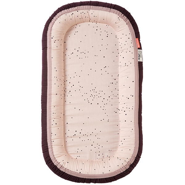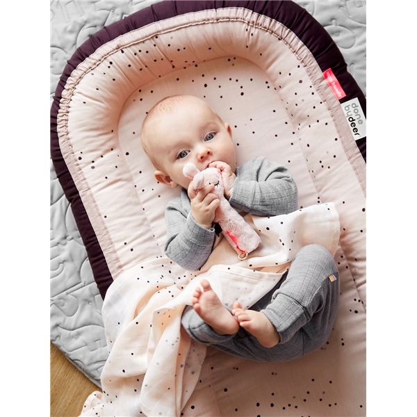 Done By Deer Cozy Nest Plus Dots Powder skapar en mysig, trygg plats för bebisen att sova eller vila på. Använd babynestet hemma, på resan eller när ni är borta hos någon annan för att barnet fortfarande ska känna en trygg och avslappnande känsla. Babynestet har lite högre kanter för att ge barnet stabilitet och förhindra att barnet rullar för långt åt sidan. Madrassen, fyllningen och överdraget kan enkelt tas isär genom att öppna de gömda YKK-dragkedjorna för att tvätta delarna.
