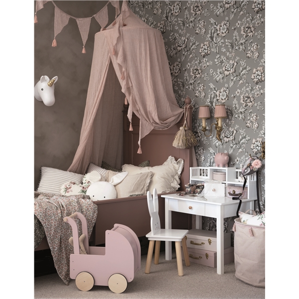 JaBaDaBaDo Sänghimmel Dusty Pink skapar en fin, ombonad och lyxig känsla i barnrummet. Sängen blir en mysig sovplats och barnet kommer att sova som prinsessan på ärten med en sänghimmel. Den kan också hängas upp på annat plats i rummet och fyllas med kuddar för att skapa en mysig läshörna eller med leksaker för en mysig plats att leka på. Sänghimmeln skapar en mysig känsla i rummet och blir en fin inredningsdetalj, häng enkelt upp den i den öglan i kraftigt tyg.