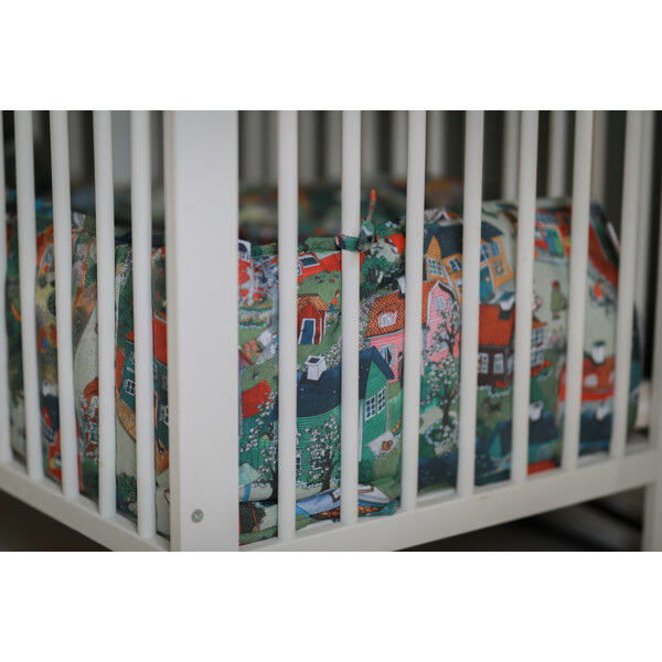 Gör sovplatsen för ditt barn till en trygg och mysig plats med ett spjälskydd med motiv från Lotta på Bråkmakargatan. Skyddet knyts enkelt runt sängens spjälor. Yttertyget är i bomull och fyllningen är av polyester i hög kvalitet som ger god ventilation och bra tvättegenskaper. Spjälskyddet passar till de allra flesta sängar.