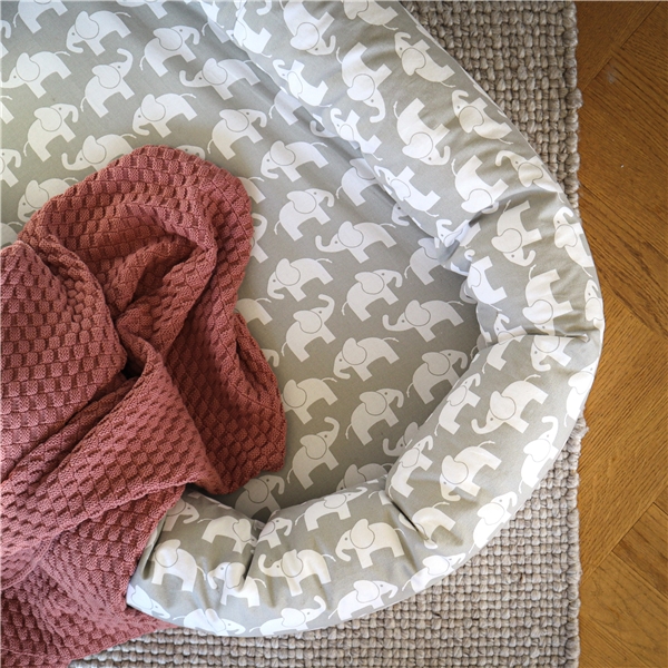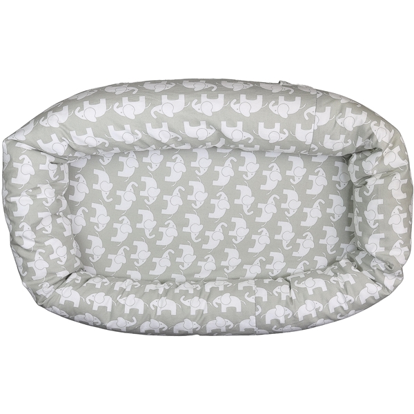 Rätt Start Elefant Sovpöl Grå är en sovpöl med söta, vita elefanter. Detta mysiga och stabila babynest med mjuka, formbara kanter funkar fint som en ombonad insats i spjälsängen eller som en trygg viloplats var som i hemmet. På resan funkar babybädden både som sovplats och skötbädd. När barnet blir äldre blir pölen perfekt att sitta i och leka. Madrassen är gjord av polyester vilket ger en hög komfort och yttertyget går att ta av och tvätta i maskinen.