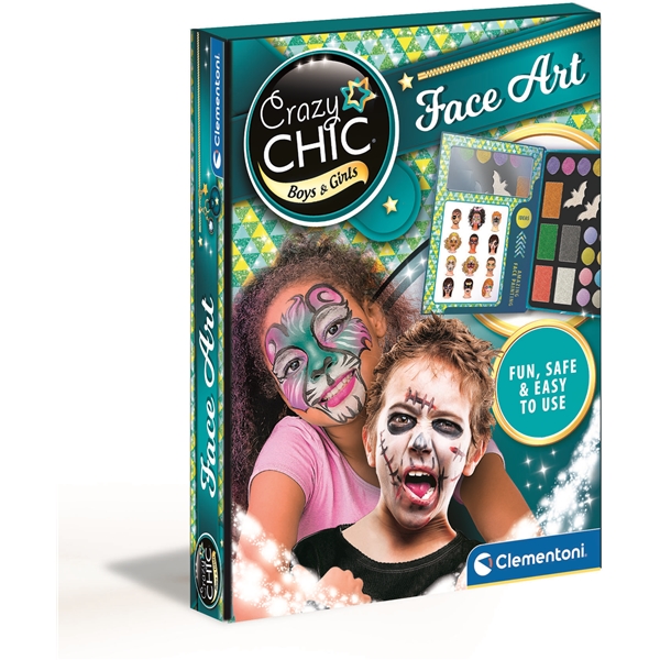 Crazy Chic Face Art är ett fantastiskt set för barn med allt du behöver för att skapa magiska ansiktsmålningar. Setet innehåller ansiktsfärger, ögonskuggor för skuggning, en applikator och svampar. Det sitter även en spegel inuti produkten och inspirationsbilder. Utveckla kreativiteten, fingerfärdigheter och fantasin!