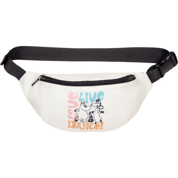 En praktisk Mumin magväska tillverkad i stadig polyester. Väskan har justerbar midjerem och blixtlås upptill.