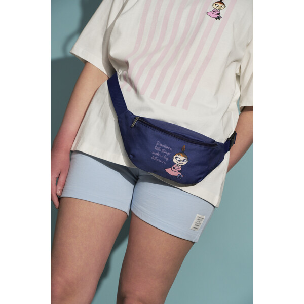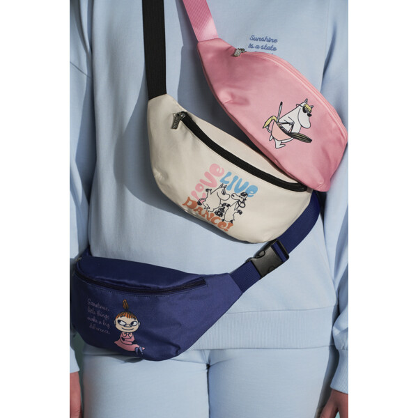 En praktisk Mumin magväska tillverkad i stadig polyester. Väskan har justerbar midjerem och blixtlås upptill.
