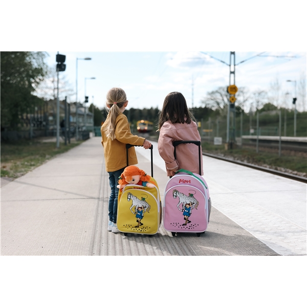 Den söta resväskan från Pippi har plats för allt barnet behöver på äventyret. Barnväskan är perfekt till en liten äventyrare som gärna vill rulla väskan själv - precis som Pippi!