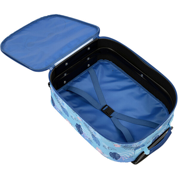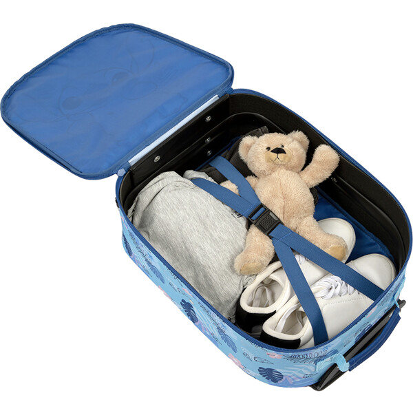 Disney Stitch barnresväska med stort huvudfack och tvåvägsdragkedja med dekorativt draghandtag. Utrustad med elastiska remmar invändigt, justerbart och låsbart teleskophandtag, bärhandtag, två hjul och två stödben. Har även ett namnfält. Perfekt för resor och skola!Material: Polyester.