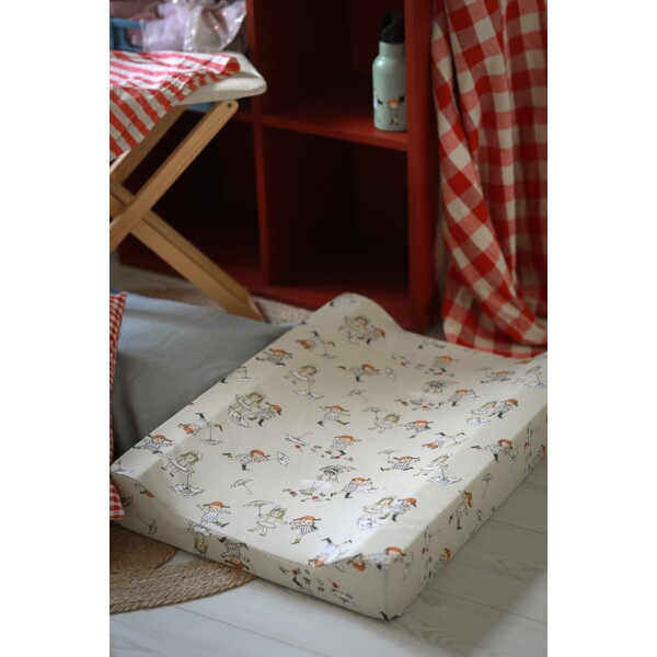 Praktisk skötbädd med motiv från Pippi Långstrump.