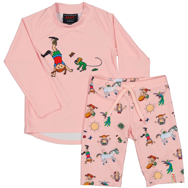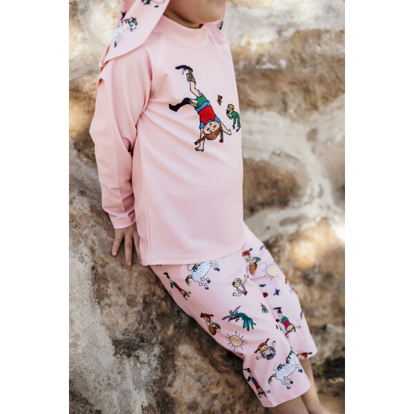 UV-Set med Pippi-motiv från Geggamoja. Tröja med lång ärm och byxa med korta ben. Byxan har resår i midjan.
