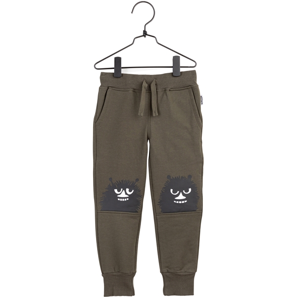 Mumin Stinky Collegebyxa Mörkgrön är mjuka och bekväma byxor med fickor och dragsko i midjan. Byxorna har en härlig grön färg med Stinky-tryck på båda knän.