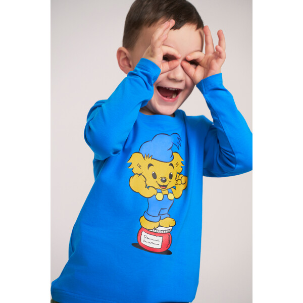 En mjuk och bekväm Bamse tröja för barn. I rak modell med långa ärmar, rund halsringning och roligt tryck framtill. Produkten innehåller certifierad ekologisk bomull.